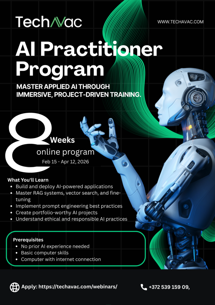 Hands-on practical AI training. Build real world projects including chatbots, recommendation systems, and sentiment analysis tools while mastering industry tools.